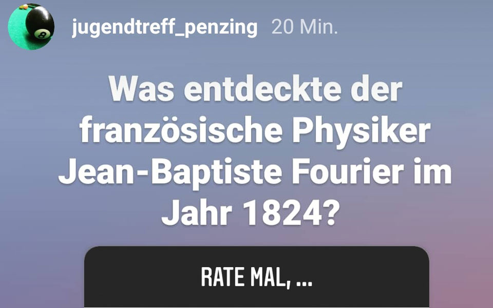 Die Beschränkungen auf Grund der Covid 19 Situation veränderten den Arbeitsauftrag des Jugendtreffs Penzing, also ein Raumangebot für Jugendliche zu schaffen, maßgeblich. Die Arbeit verlagerte sich in den digitalen Raum, und da stand Instagram für das Team des Jugendtreff Penzing an erster Stelle, um weiterhin mit den Jugendlichen in Kontakt zu bleiben.