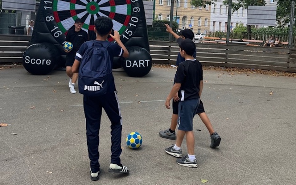 Die Kinder und Jugendlichen konnten ihr sportliches Geschick beim Soccer-Dart anwenden. Dabei wurde eine riesige mit Luft befüllte Dartscheibe mit Klettfußbällen beschossen. Bei einem Tischtennisturnier konnten die Besucher:innen ihrer Begeisterung für Sport nachgehen. Die nächste Station stand unter dem Motto „Schätzung“, hierbei wurde nach Augenmaß die Anzahl von Schokokugeln in einem Glas geschätzt. Zudem durften sich Kinder und Jugendliche eine Erfrischung in Form von Saft und Obstsalat holen. Der Boden wurde durch Straßenkunst mit Kreide bunt bemalt und weitere Kreativität konnte beim Basteln verschiedenster Papierfalttechniken gezeigt werden. Aus einer Jongliere-Box durften sich Kinder und Jugendliche an Diabolos, Jongliertüchern und -bällen üben. Für jede der vier Hauptstationen gab es jeweils einen Stempel im Stempel-Pass und anschließend ein kleines Goody zu gewinnen. Das Abschlussprogramm bildete ein Theaterstück, organisiert durch „WienXtra“.